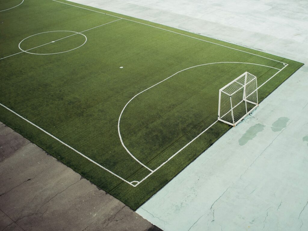 僕がボールをもって攻め出した時にめくれていた人工芝に足が引っかかり、膝をつきました。