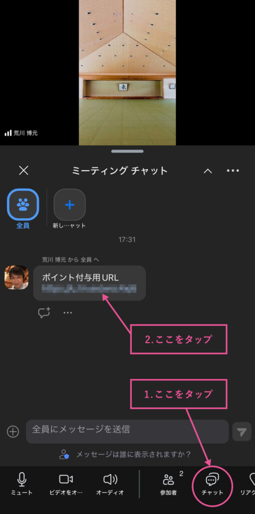 2️⃣ チャット欄に表示された【ポイント取得URL】をタップします。